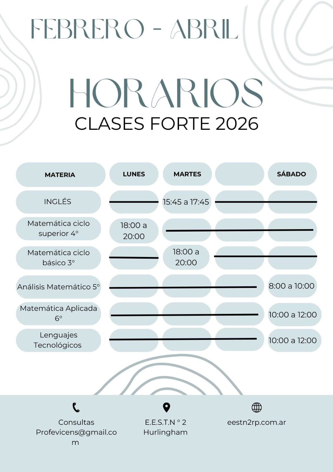 A diferencia de los primeros dos periodos del programa durante el comienzo del 2025, en este nuevo periodo no hay matemática de ciclo básico para primer y segundo año por la poca asistencia de los estudiantes a las clases de FORTE(Periodo de agosto). Por ello en esta nueva etapa se priorizó las asignaturas de matemática pero del ciclo superior. Esperamos que les sea provechoso este espacio y que puedan continuar acreditando los contenidos adeudados. Para más consultas: